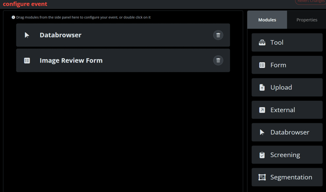 The databrowser is chosen as content in an event by dragging it in to the configuration window under "Configure Event".