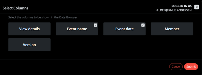 In this example only "Event name" and "Event date" was chosen to appear in the databrowser, which configures the data browser to appear like the below example.