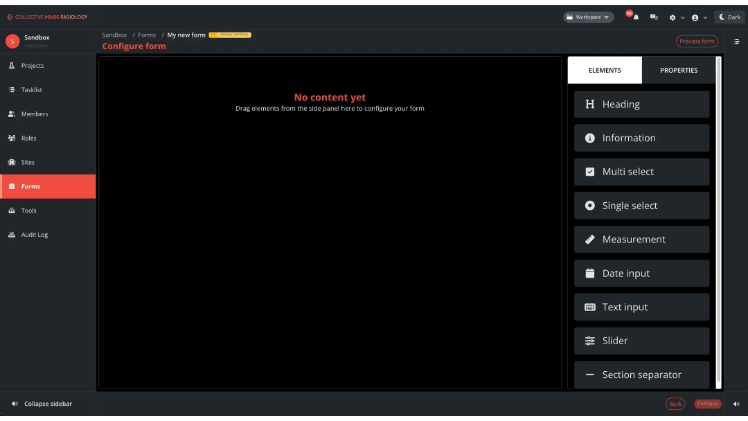 Forms is a library that contains all the forms from every project within the repository. A form, or case report form (CRF), is a structured questionnaire designed according to the study protocol to systematically collect and organise data.