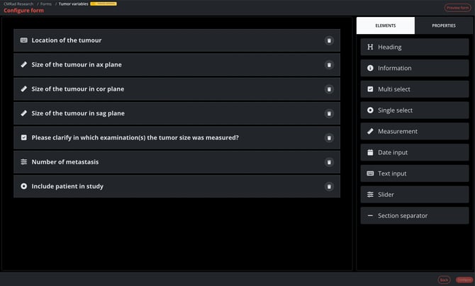 - Configure form: add, delete or adjust questions, informations and variables within the form.