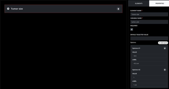 - Default selected value: enter the value in the provided square if you want one of the options to be pre-filled.