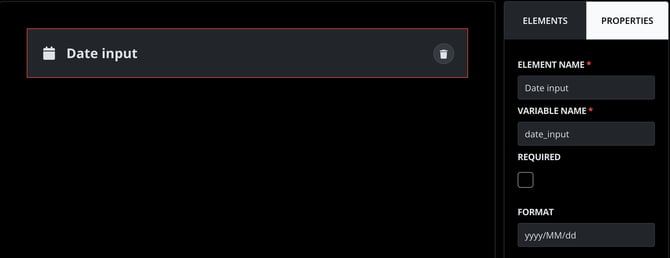 The Date element allows users to add a date in a pre-defined format to ensure consistency and accuracy in the collected dates and making it easier to analyse and interpret information collected over time.