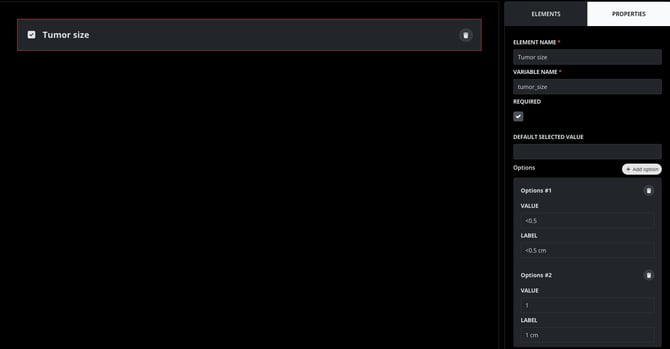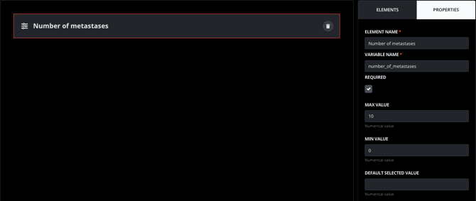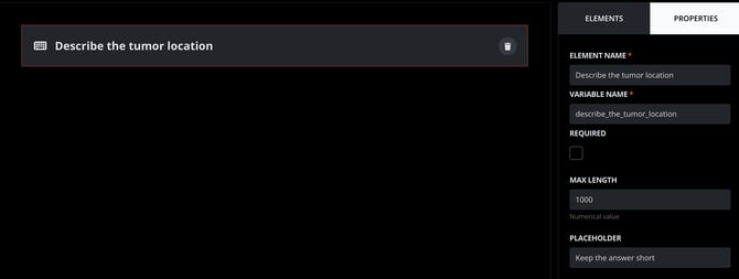 - Variable name enter a unique name that will refer to this specific element in the result table. This information will not be displayed on the form.